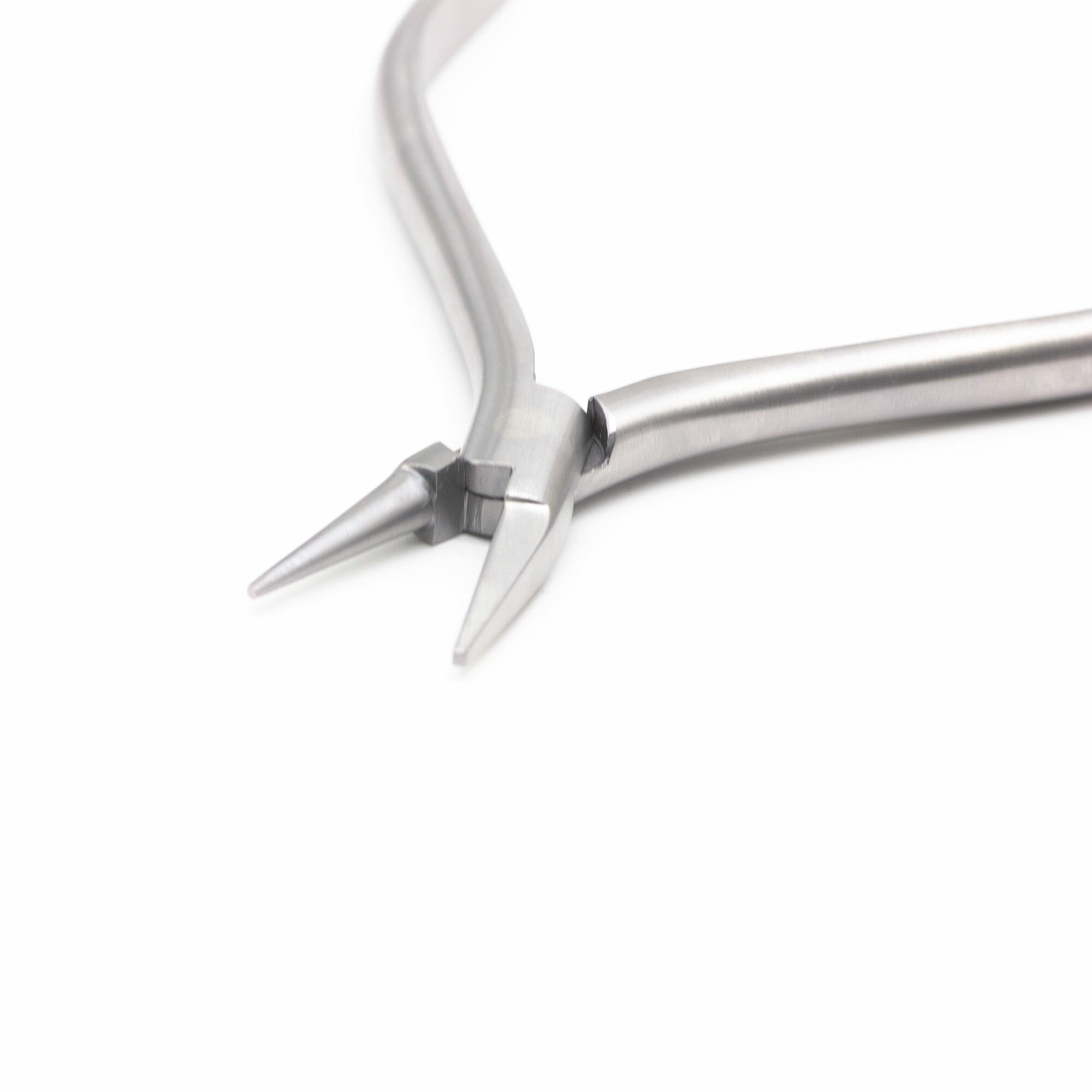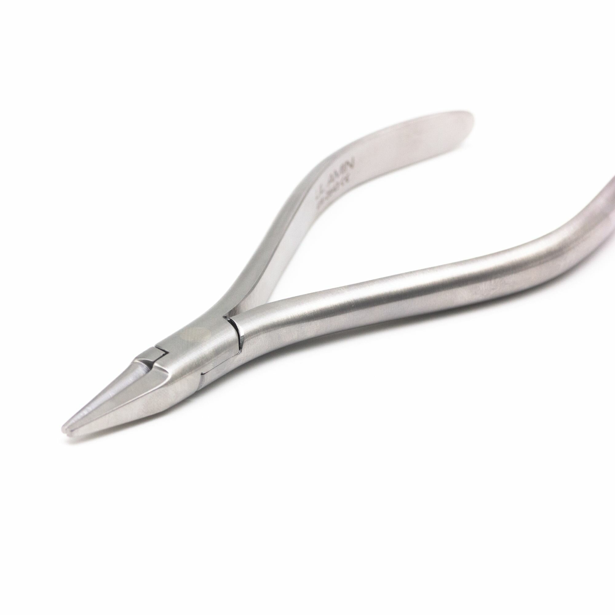 Щипцы Энгля ортодонтические, длинные, нержавеющая сталь, серебристый, предназначены для нанесения небольших плавных изгибов и петель, а также для изгибания дуг ТМА, которые могут ломаться при использовании инструментов с острыми гранями.
