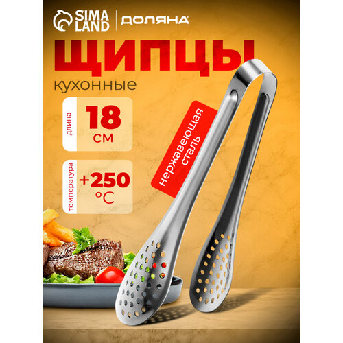 Купить Щипцы кухонные с перфорацией Доляна, 201 сталь, 18 см с доставкой по всей России. Щипцы кухонные с перфорацией Доляна, 201 сталь, 18 см: сравнение цен, характеристики, фото, актуальное наличие и цены.