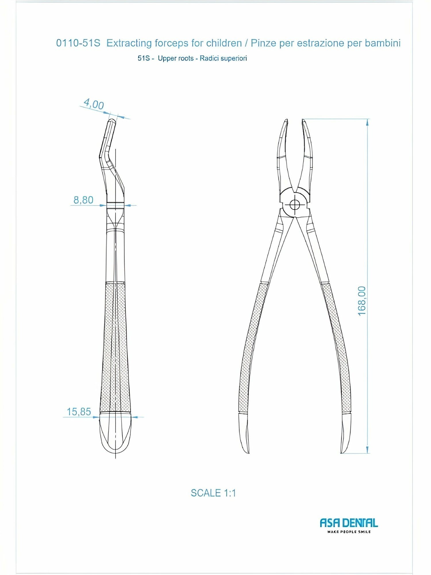 Щипцы N51S для удаления детские верхних корней с зазубренными кончиками.
