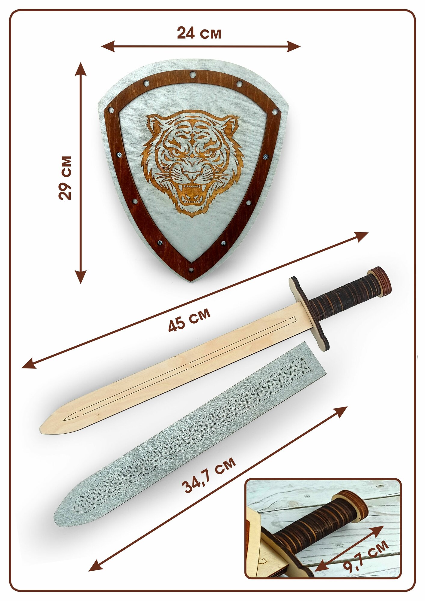 Набор оружия из дерева – отличный подарок для вашего ребенка! Этот деревянный набор включает в себя щит и меч, которые идеально подойдут для активных игр на свежем воздухе или в помещении.