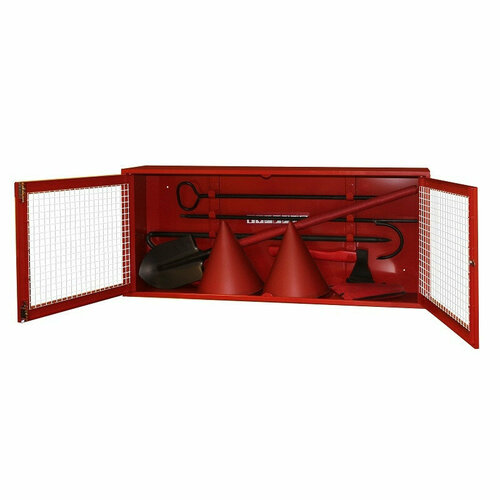 Щит пожарный Престиж ЩПЗ-СК металлический навесной с решеткой (125x55x30 см)предназначен для хранения пожарного инвентаря и огнетушителей, а также пожарных полотен. Габариты в сборном виде: 125x55x30 см. Допустимый вес наполнения: 28 кг. В комплект поставки входят: Багор; Лом; Лопата; Топор; 2 ведра; Противопожарное полотно Данный пожарный шкаф неразборный, изготовлен из металла и предназначен для установки на весу.