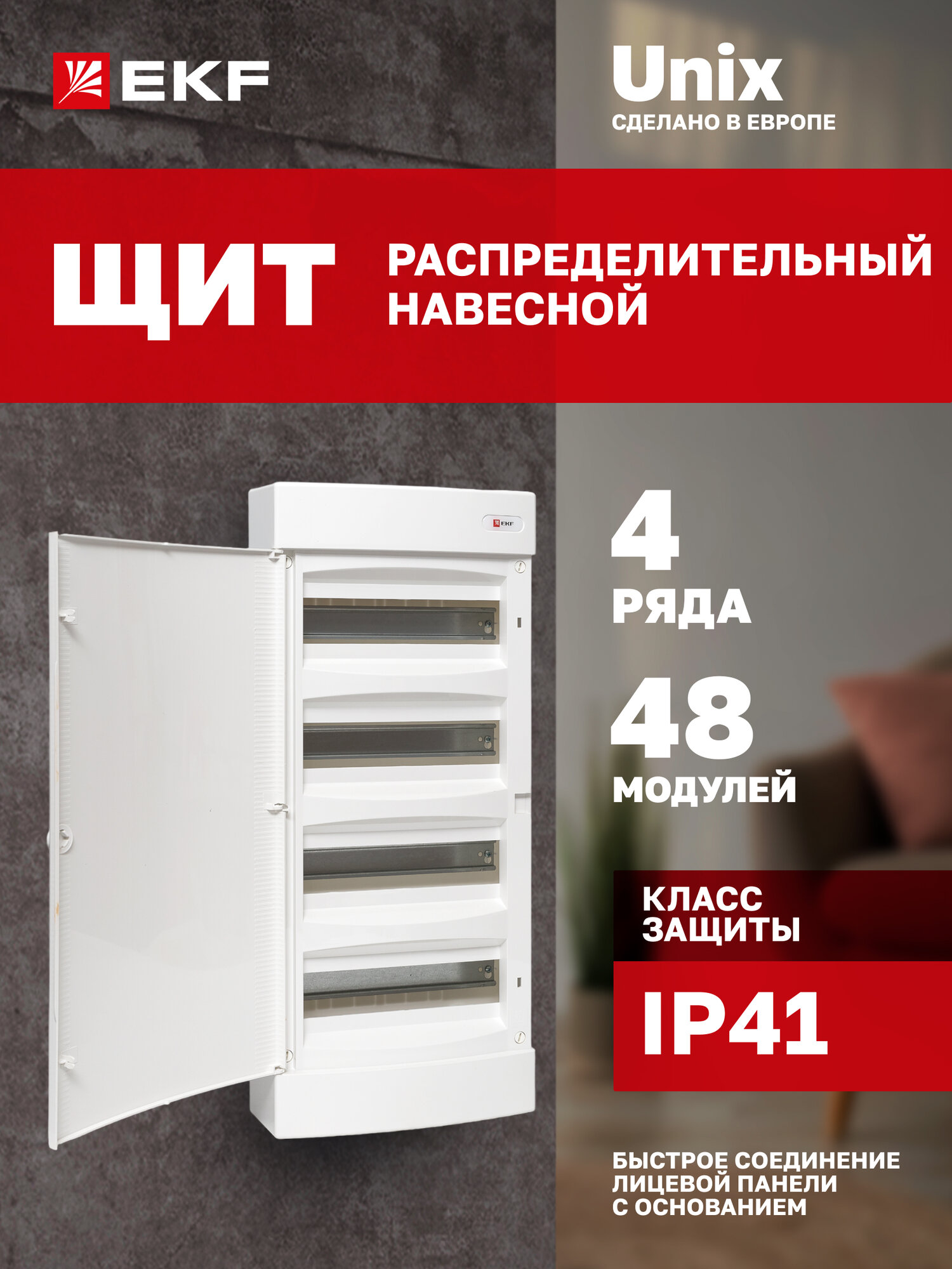 Щит распределительный навесной пластиковый EKF Unix белая дверь 4х12 модулей IP41: сравнение цен, характеристики, фото, актуальное наличие и цены.