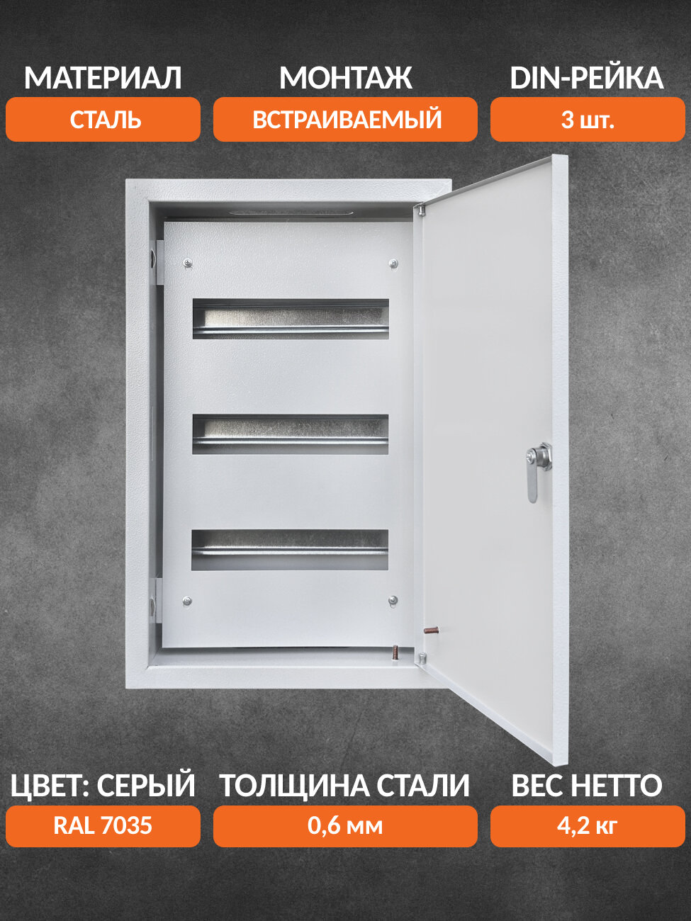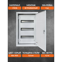 Щит распределительный встраиваемый ЩРВ-36 IP31 изготовлен из металлического корпуса и представляет собой надежное и функциональное решение для сборки электрощитов. Он предназначен для использования с модульной аппаратурой для ввода и распределения электроэнергии (автоматических выключателей, УЗО, дифференциальных автоматов, контакторов, реле напряжения, электросчетчиков), для сборки электрощитов (силовых, управления, автоматики), для распределительных щитов, а также для защиты сетей напряжение 380/220В от токов короткого замыкания. Монтаж и установка выполняется на DIN рейку.