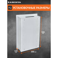 Встраиваемые размеры щитка: 500х300х120 мм.