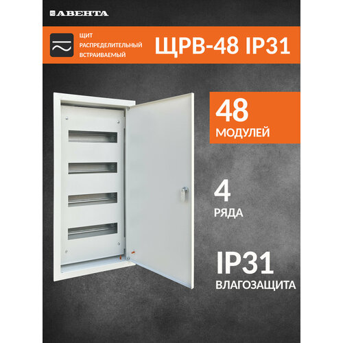 Щит распределительный встраиваемый ЩРВ-48 IP31 представляет собой надежное и функциональное решение для сборки электрощитов. Он предназначен для использования с модульной аппаратурой для ввода и распределения электроэнергии, а также для защиты сетей напряжение 380/220В от токов короткого замыкания.