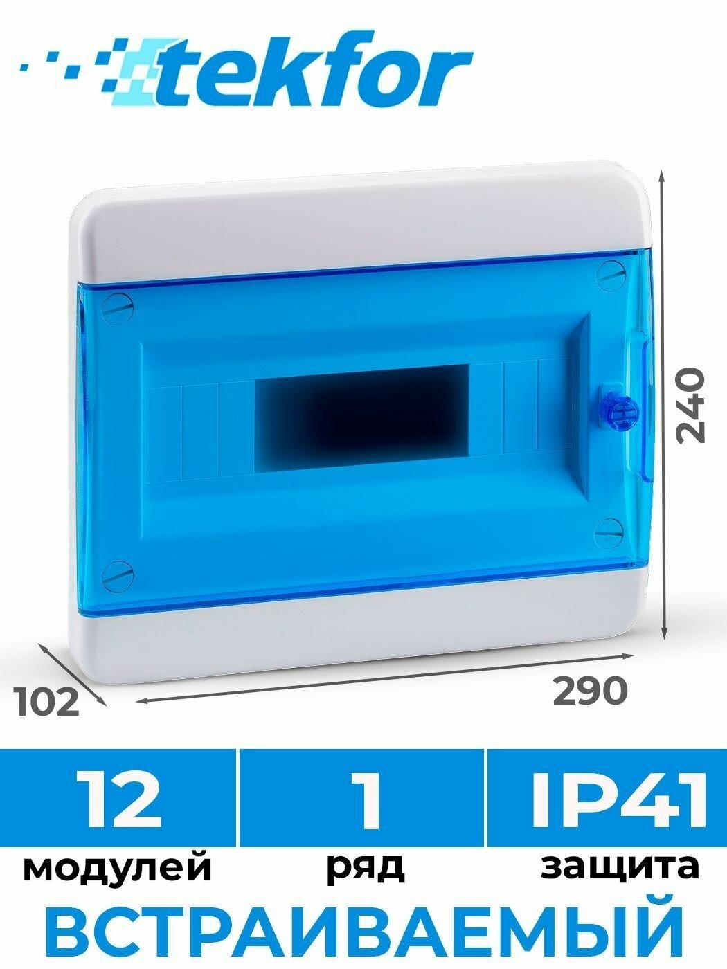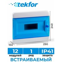 Щит распределительный встраиваемый TEKFOR ЩРВ-П-12 пластиковый на 12 модулей / Щиток электрический квартирный с дверцей IP41: сравнение цен, характеристики, фото, актуальное наличие и цены.