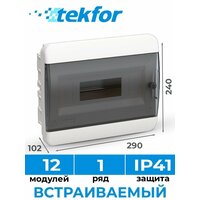 Щит распределительный встраиваемый TEKFOR ЩРВ-П-12 пластиковый на 12 модулей / Щиток электрический квартирный с дверцей IP41: сравнение цен, характеристики, фото, актуальное наличие и цены.
