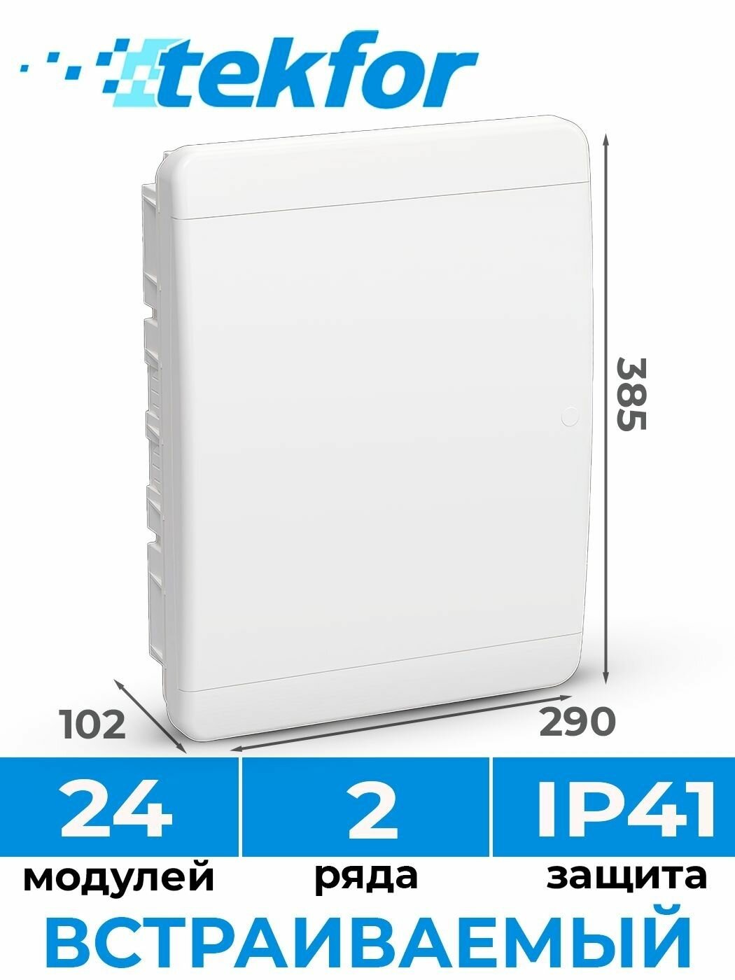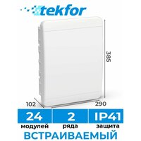 Щит распределительный встраиваемый TEKFOR ЩРВ-П-24 пластиковый на 24 модулей / Щиток электрический квартирный с дверцей IP41, 2 ряда: сравнение цен, характеристики, фото, актуальное наличие и цены.