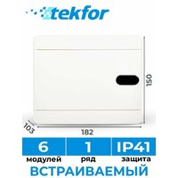 Щит распределительный встраиваемый TEKFOR ЩРВ-П-6 пластиковый на 6 модулей / Щиток электрический квартирный с дверцей IP41: сравнение цен, характеристики, фото, актуальное наличие и цены.