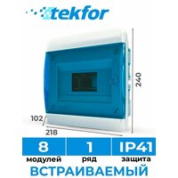 Щит распределительный встраиваемый TEKFOR ЩРВ-П-8 пластиковый на 8 модулей / Щиток электрический квартирный с дверцей IP41: сравнение цен, характеристики, фото, актуальное наличие и цены.