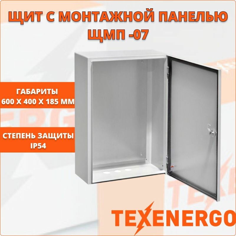Щит с монтажной панелью ЩМП -07 600х400х185 IP54 У2 навесной металлический бокс, уличный корпус с замком Texenergo 53321: сравнение цен, характеристики, фото, актуальное наличие и цены.