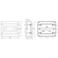 дверца имеет возможность установки замка; класс электроизоляции II; цвет корпуса белый RAL 9016; материал самозатухающий термопластик, обладающий стойкостью к воспламенению при воздействии нагретой до температуры 650°С проволокой (испытание по ГОСТ 27483 (МЭК 60 695-2-1)); рабочие температуры от –25…+60 °С; межосевое расстояние между рядами 115 мм; максимальная высота модульных устройств для установки в щит 53 мм; используемый размер оцинкованной DIN-рейки 35×7,5 мм; щиты изготавливаются согласно стандарта ГОСТ Р 50827 (МЭК 670)