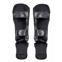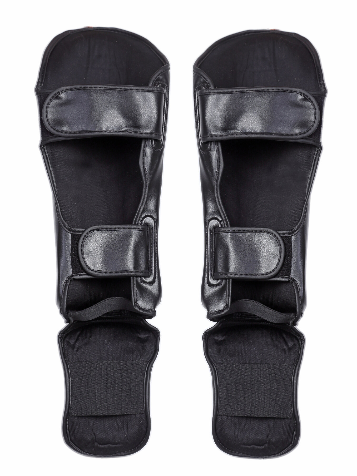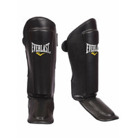 Защита голени для единоборств от Everlast Внутренняя часть из текстильного материала. Анатомическая колодка имеет сужение к стопе позволяющая более точно подогнать и зафиксировать на ноге спортсмена. Система крепления состоит из 2-х ремней с липучками и дополнительных эластичных лямках на стопе. Более тонкая форма по сравнению с предыдущими моделями. Плотная многослойная набивка надежно амортизирует удары. Наличие центральной гарды позволяет безопасно работать на снарядах и в спаррингах.