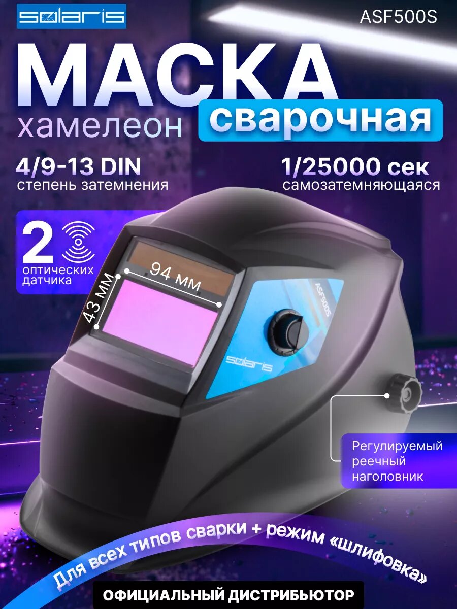 Маска сварочная хамелеон Solaris ASF500S: сравнение цен, характеристики, фото, актуальное наличие и цены.