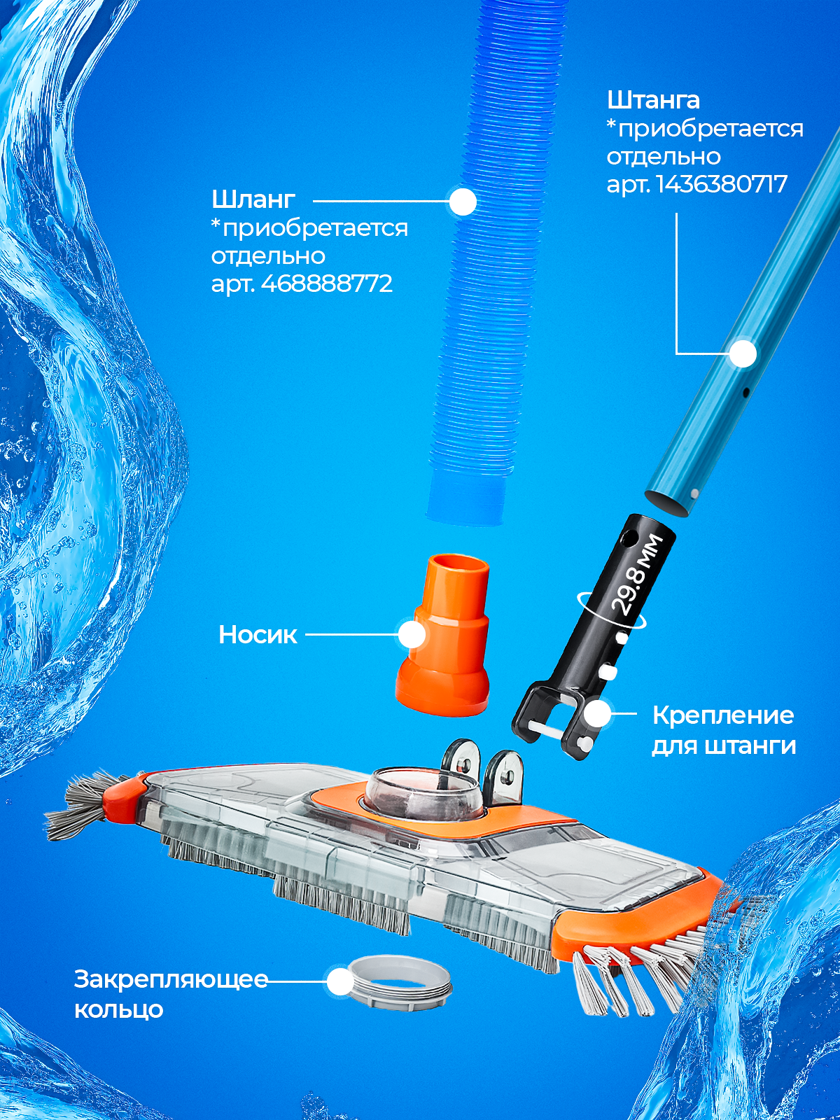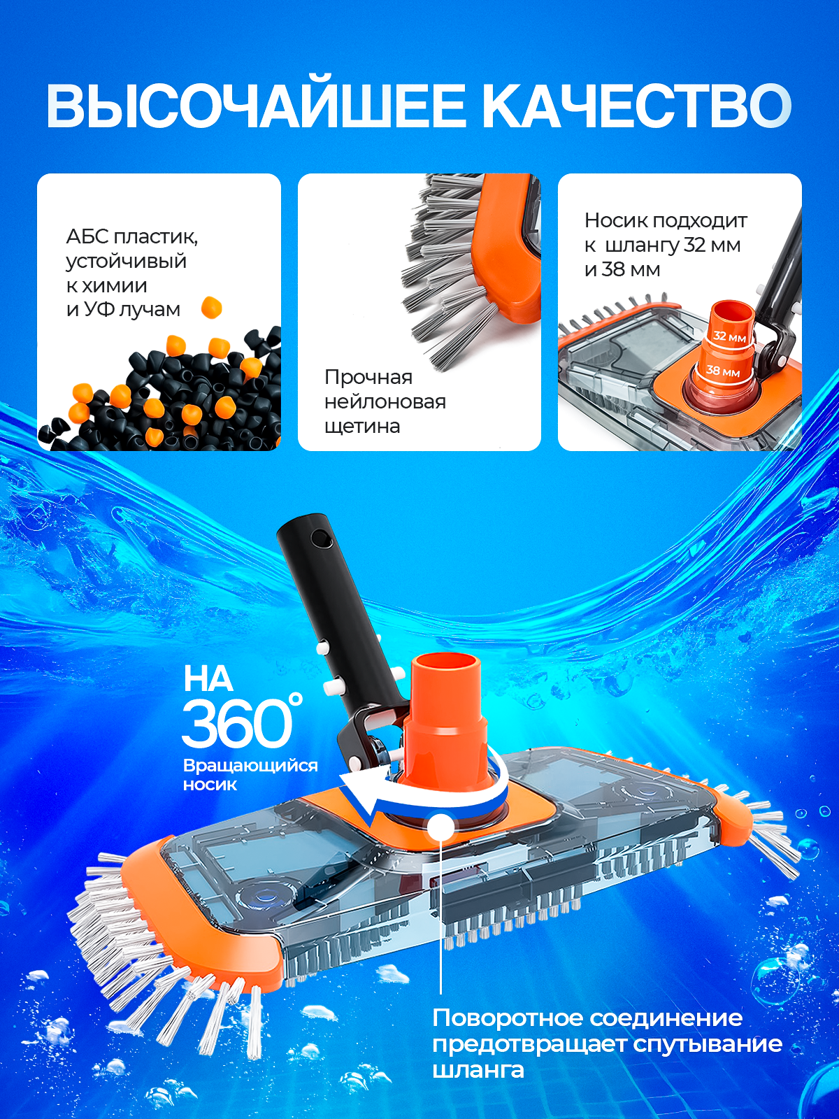 Щётка черно-оранжевая донная для пылесоса Vommy Premium для уборки/чистки бассейна, без штанги: сравнение цен, характеристики, фото, актуальное наличие и цены.