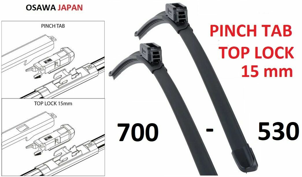 Щётки бескаркасные FW Osawa 700-530 мм (с креплением Pinch Tab; Top lock)