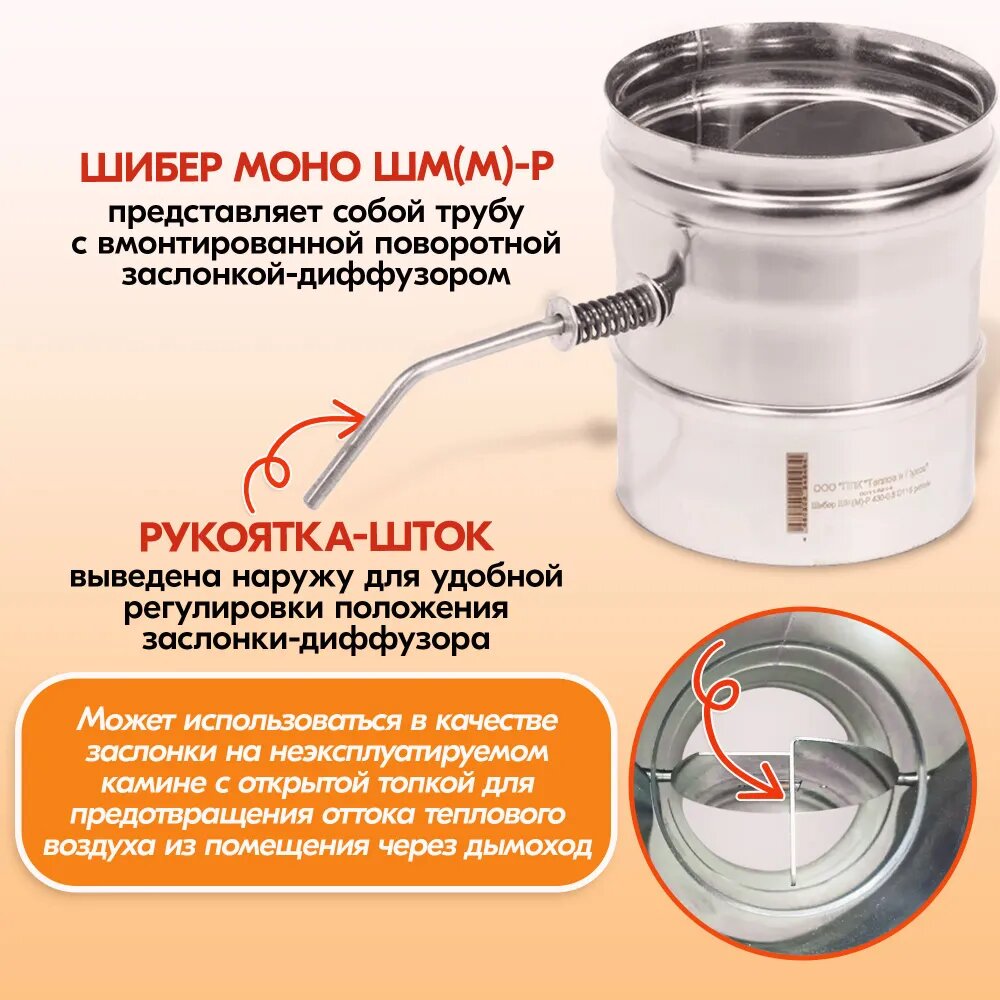 Шибер Моно ШМ(М)-Р 304-0.8 D120 дымохода: сравнение цен, характеристики, фото, актуальное наличие и цены.