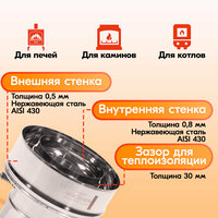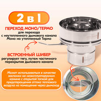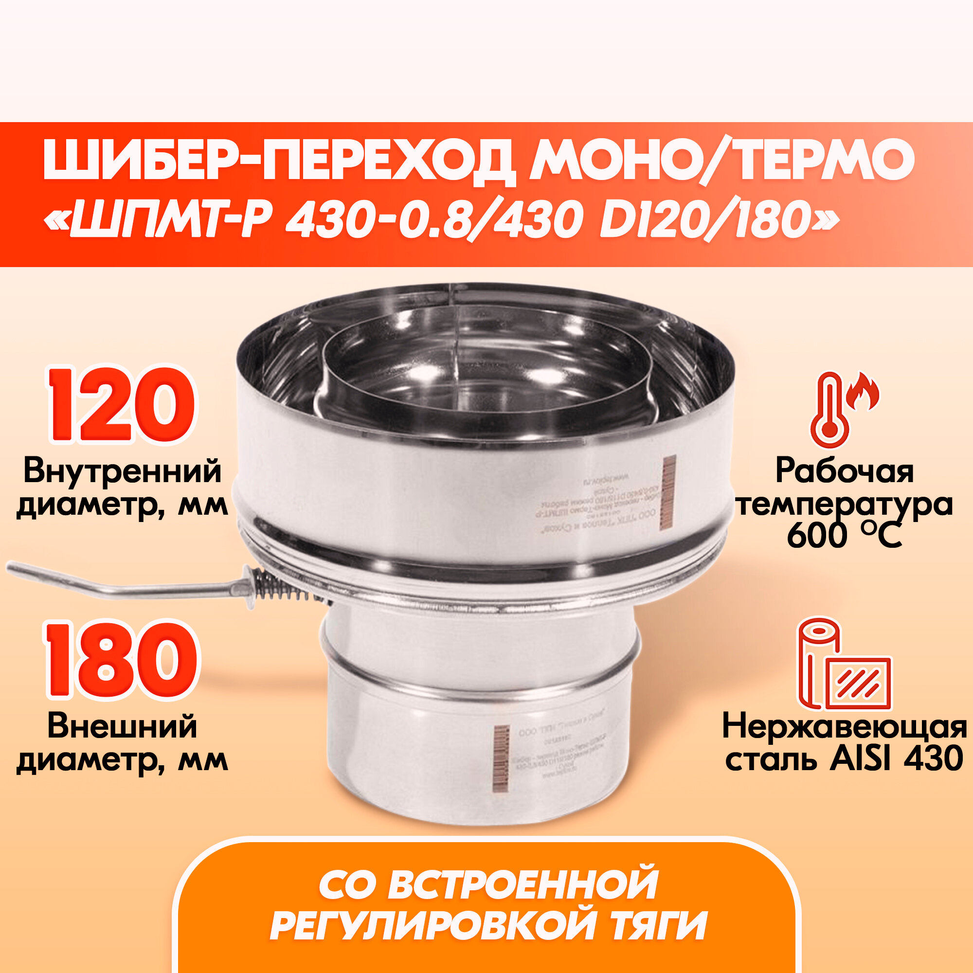 Шибер-переход Моно-Термо шпмт-р 430-0.8 сталь 430 D120/180 дымохода, переход моно термо из нержавейки с шибером для сэндвич трубы: сравнение цен, характеристики, фото, актуальное наличие и цены.