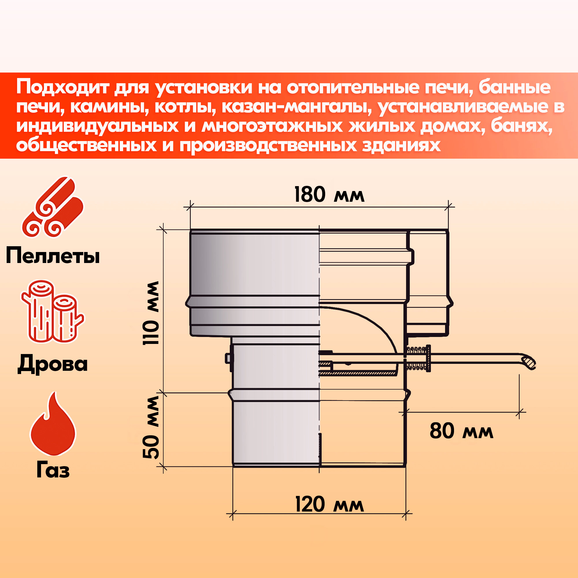 Купить Шибер-переход Моно-Термо шпмт-р 430-0.8 сталь 430 D120/180 дымохода, переход моно термо из нержавейки с шибером для сэндвич трубы с доставкой по всей России.