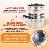 Данный товар гарантированно стыкуется только С продукцией теплов И сухов. Шибер-задвижка используется для регулирования тяги, путем частичного перекрытия дымового канала, а также в качестве заслонки на неэксплуатируемом камине с открытой топкой для предотвращения оттока теплого воздуха из помещения через дымоход. Представляет собой классическую конструкцию шибера с перекрыванием дымового канала посредством задвижки.