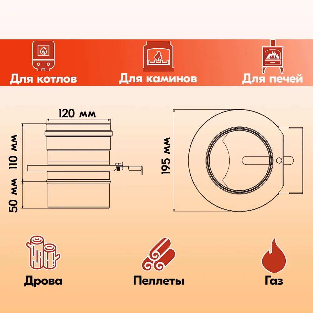 Купить Шибер-задвижка 430-0.8 D120 дымохода с доставкой по всей России. Шибер-задвижка 430-0.8 D120 дымохода: сравнение цен, характеристики, фото, актуальное наличие и цены.