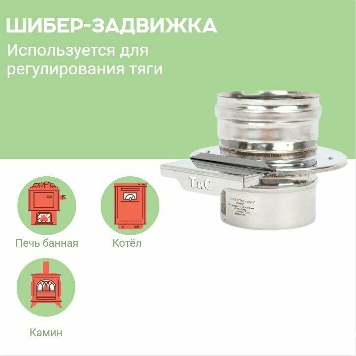 Шиберы производства компании Теплов и Сухов для дымоходной системы Моно являются элементом дымоходной системы и предназначены для регулирования тяги, путем частичного перекрытия дымового канала. Подходят для установки на отопительные печи, банные печи, камины, котлы, казан-мангалы, устанавливаемые в индивидуальных и многоэтажных жилых домах, банях, общественных и производственных зданиях. Также могут использоваться в качестве заслонки на неэксплуатируемом камине с открытой топкой для предотвращения оттока теплового воздуха из помещения через дымоход.