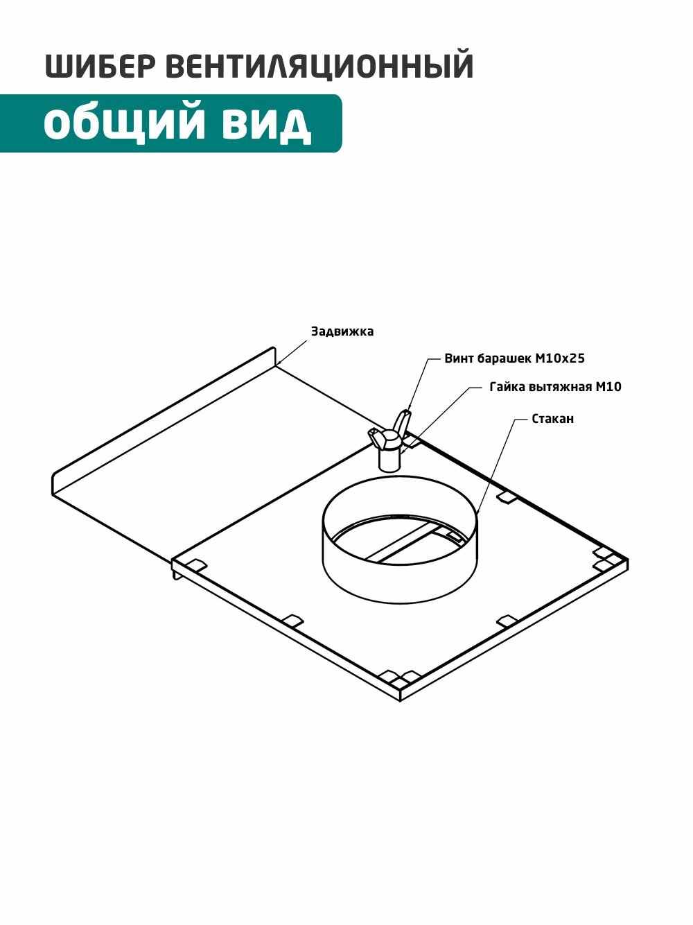 Шибер вентиляционный – это запорное устройство, предназначенное для регулирования потока воздуха в вентиляционных системах. Представляет собой подвижную пластину, которая перемещается перпендикулярно воздушному потоку.