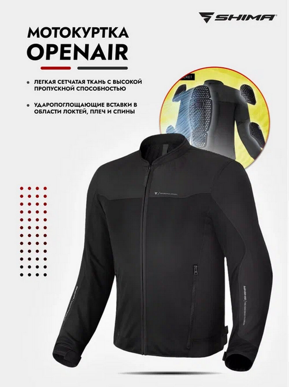 Модель OPENAIR — куртка, созданная для коротких поездок на мотоцикле в жаркие летние дни.