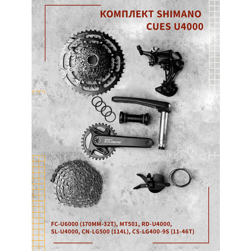 Shimano CUES U4000 Состав комплекта: шатуны FC-U6000-1 170MM-32T)+(каретка MT501)+(кассета CS-LG400-9S 11-46T)+(цепь CN-LG500 114L)+(SL-U4000)+( RD -U4000)