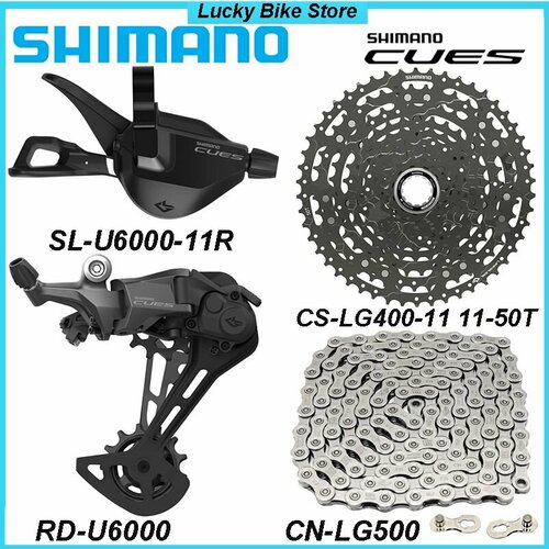 Shimano Cues U6000, группа 1×11, переключение SL-R/RD (Без окном), кассета CS-LG400 11-50T, цепь CN-LG500 124L, Комплект для переключения скоростей велосипеда(набор из 4 шт.): сравнение цен, характеристики, фото, актуальное наличие и цены.
