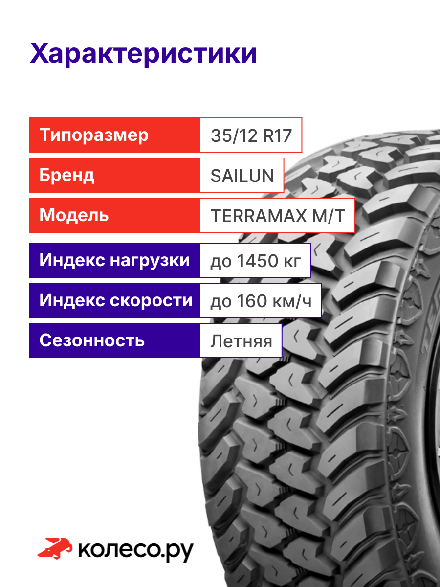 Sailun Terramax M/T 35/12.5 R17 121Q летние автомобильные шины: сравнение цен, характеристики, фото, актуальное наличие и цены.