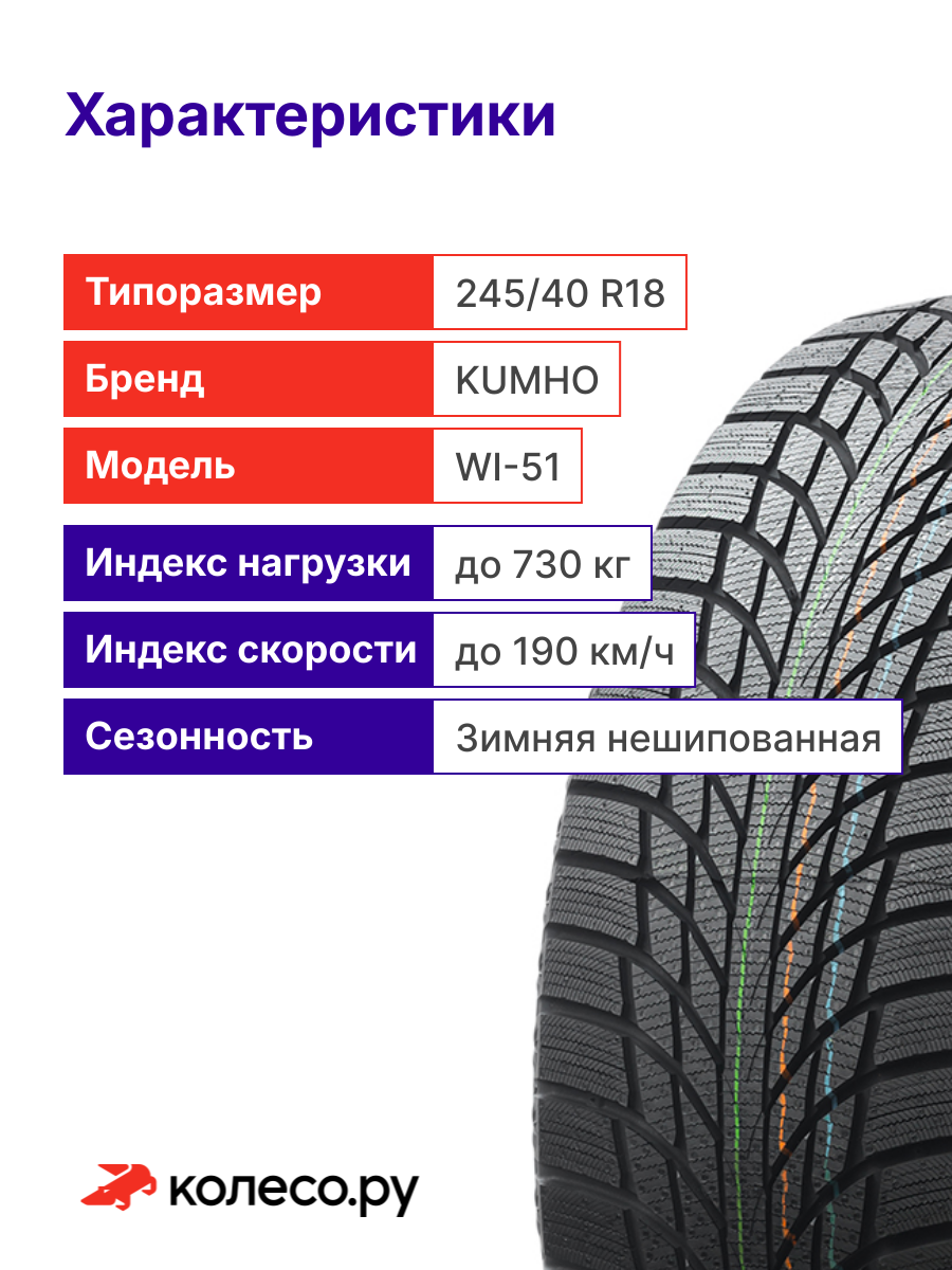 Нешипованная зимняя шина Kumho WI51 для легковых автомобилей отлично подойдет для использования в городских условиях. Она характеризуется улучшенными сцепными свойствами на зимних дорогах, хорошей проходимостью на неочищенных участках. Протектор шины изготовлен из резиновой смеси на основе «силики» HDMS. Помимо этого, в состав компаунда включены частицы арамидных волокон. Такое сочетание позволяет покрышке очень эффективно цепляться за любую скользкую поверхность. Направленное против движения V-образное расположение дренажных канавок обеспечивает высокую интенсивность отвода из-под шины тяжеловесной смеси из воды и снега. На очищенном асфальтированном покрытии сцепные свойства обеспечиваются увеличенным пятном контакта. Это достигается за счет оптимизированного профиля протектора и большой полезной площадью его рисунка. Основные особенности Kumho WI51 - жесткое продольное ребро посередине повышает устойчивость на большой скорости; - резиновая смесь с добавлением частиц арамидных волокон улучшает сцепление на обледенелом и заснеженном покрытии; - оптимизированный профиль протектора увеличивает пятно контакта.