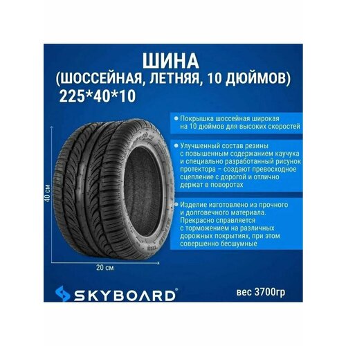 В заключение, Skyboard Шина 225 х 40 х 10 – это надежный выбор для тех, кто ценит комфорт, безопасность и качество на дороге.