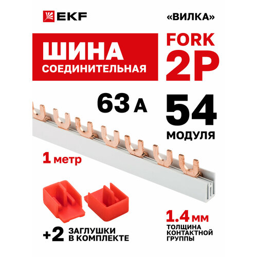 Шина соединительная типа FORK для автоматов 2-п (два полюса, одна фаза) на 63А и 54 модуля EKF PROxima — это высококачественное электротехническое изделие, предназначенное для использования в электрических системах, где необходима надежная и безопасная передача электроэнергии. Данная шина имеет стандартную длину 1 метр и выполнена из меди, что обеспечивает отличную проводимость и долговечность. Она идеально подходит для установки в распределительных щитах, электроустановках и других местах, где требуется соединение автоматических выключателей и других электрических устройств. Благодаря своей универсальности, шина может быть использована как в жилых, так и в коммерческих помещениях, обеспечивая надежное соединение в электросетях.
