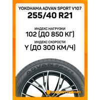 Шина Yokohama(Йокогама) Advan Sport V107 255/40 R21 102Y летняя автомобильная: сравнение цен, характеристики, фото, актуальное наличие и цены.