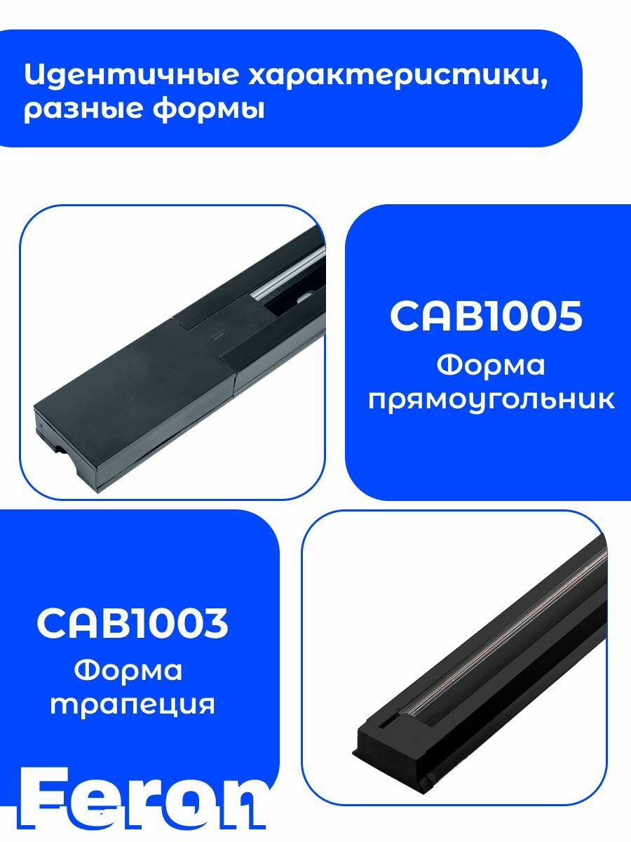 Шинопровод для трековых светильников комплект 2шт 2м чёрный Feron (в наборе токовод заглушка крепление) CAB1003 10341: сравнение цен, характеристики, фото, актуальное наличие и цены.