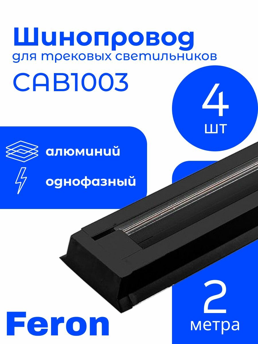 Шинопровод для трековых светильников комплект 4шт 2м чёрный Feron (в наборе токовод заглушка крепление) CAB1003 10341: сравнение цен, характеристики, фото, актуальное наличие и цены.