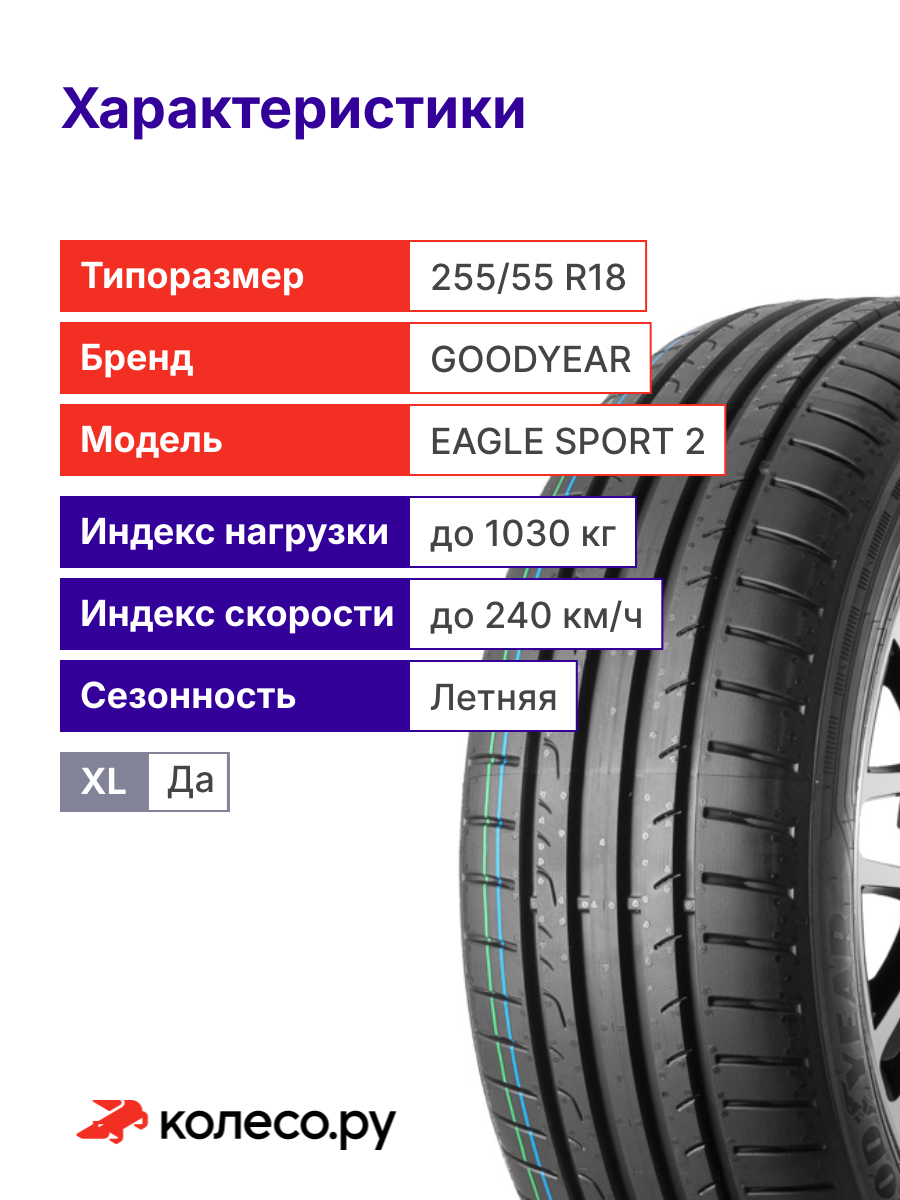 Шины летние ГУД-ЕАР EAGLE SPORT 2 255/55 R18 109V XL нешипованная летняя резина: сравнение цен, характеристики, фото, актуальное наличие и цены.