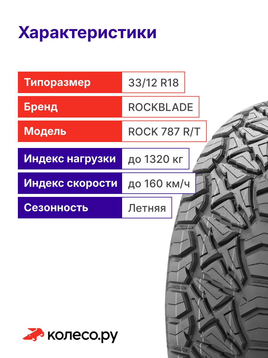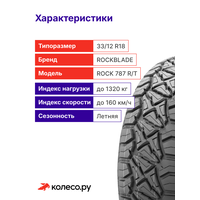 Летние шины RockBlade ROCK 787 R/T 33/12.5 R18 118Q SUV — это качественные автомобильные шины, предназначенные для установки на легковые автомобили SUV и рассчитанные на эксплуатацию в условиях лета.