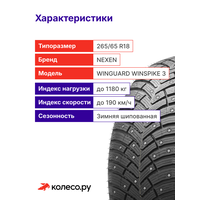 Шина NEXEN WINGUARD WINSPIKE 3 R18 265 65 114 T: сравнение цен, характеристики, фото, актуальное наличие и цены.