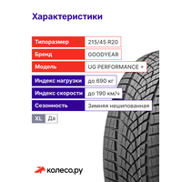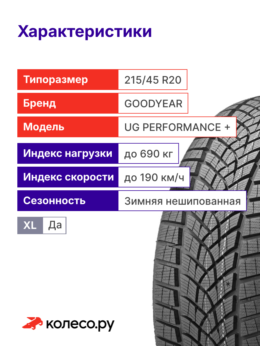 Купить Шины зимние ГУД-ЕАР UG PERFORMANCE + 215/45 R20 95T XL нешипованная зимняя резина с доставкой по всей России. Шины зимние ГУД-ЕАР UG PERFORMANCE + 215/45 R20 95T XL нешипованная зимняя резина: сравнение цен, характеристики, фото, актуальное наличие и цены.