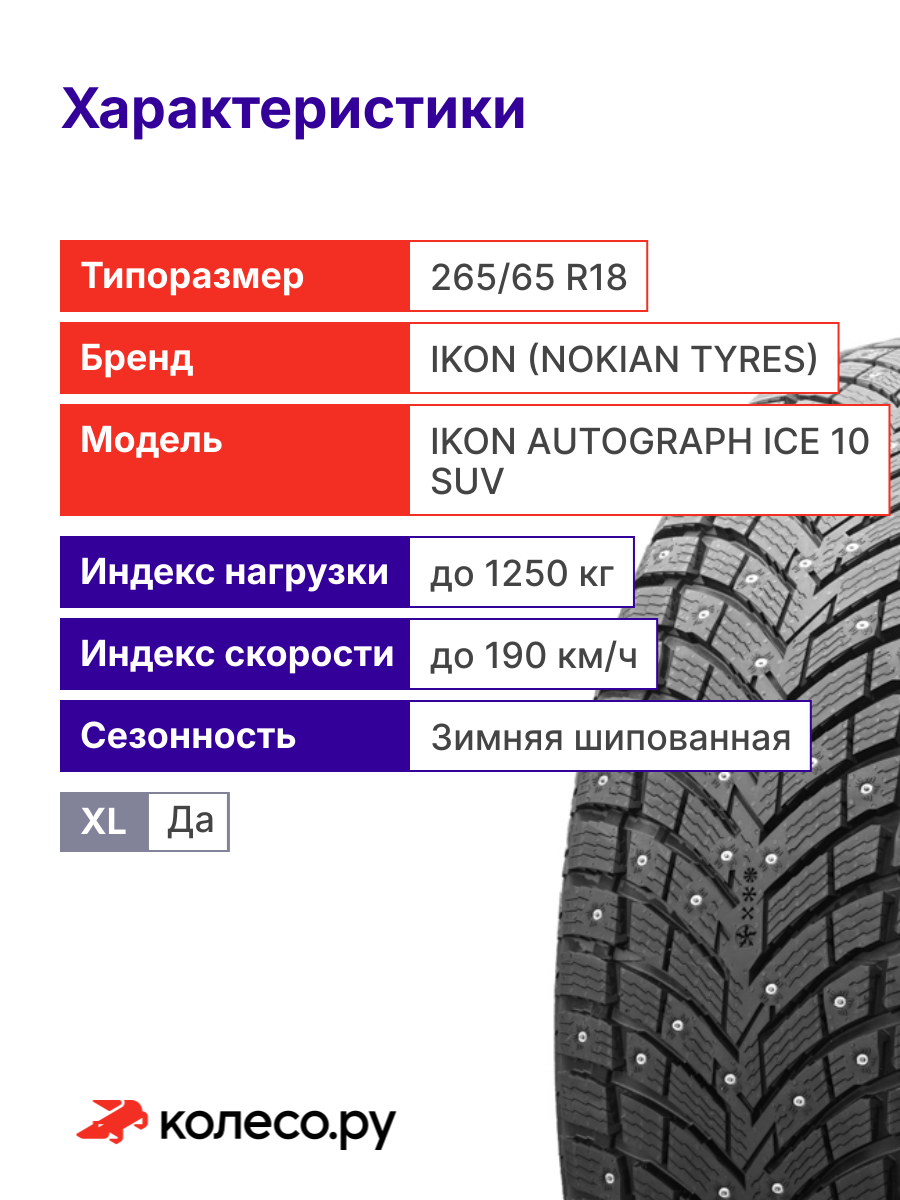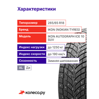 Шины зимние Ikon Tyres Ikon Autograph Ice 10 SUV 265/65 R18 116T XL шипованная зимняя резина: сравнение цен, характеристики, фото, актуальное наличие и цены.