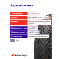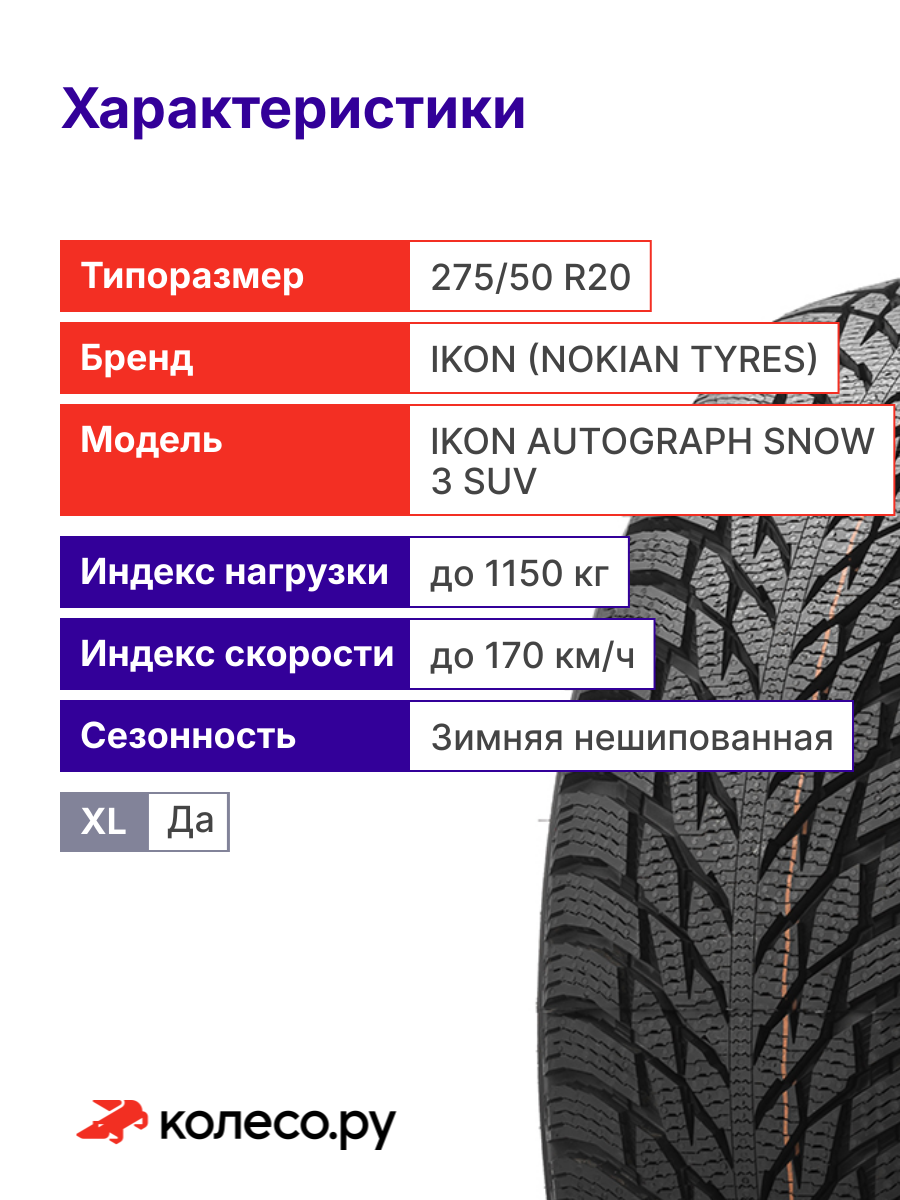 Шины зимние Ikon Tyres Ikon Autograph Snow 3 SUV 275/50 R20 113R XL нешипованная зимняя резина: сравнение цен, характеристики, фото, актуальное наличие и цены.