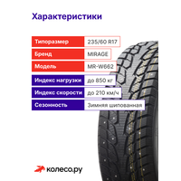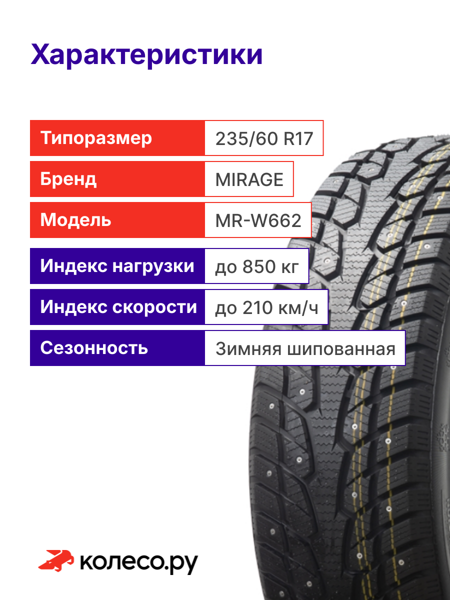 Шины зимние MIRAGE MR-W662 235/60 R17 102H шипованная зимняя резина: сравнение цен, характеристики, фото, актуальное наличие и цены.