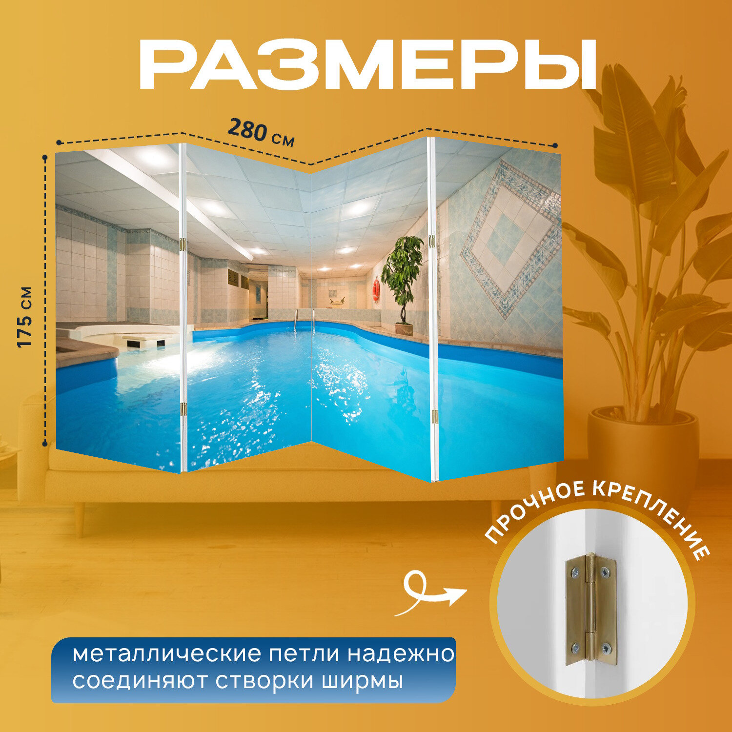 Купить Ширма «Бассейн, сауна, баня» раскладная перегородка для зонирования с принтом на холсте с доставкой по всей России. Ширма «Бассейн, сауна, баня» раскладная перегородка для зонирования с принтом на холсте: сравнение цен, характеристики, фото, актуальное наличие и цены.