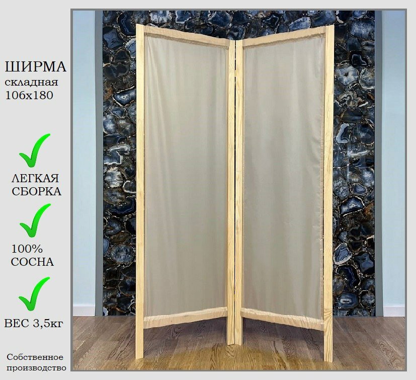 Ширма бежевая 2 створки, ширина 104 см высота 180 см, складная: сравнение цен, характеристики, фото, актуальное наличие и цены.