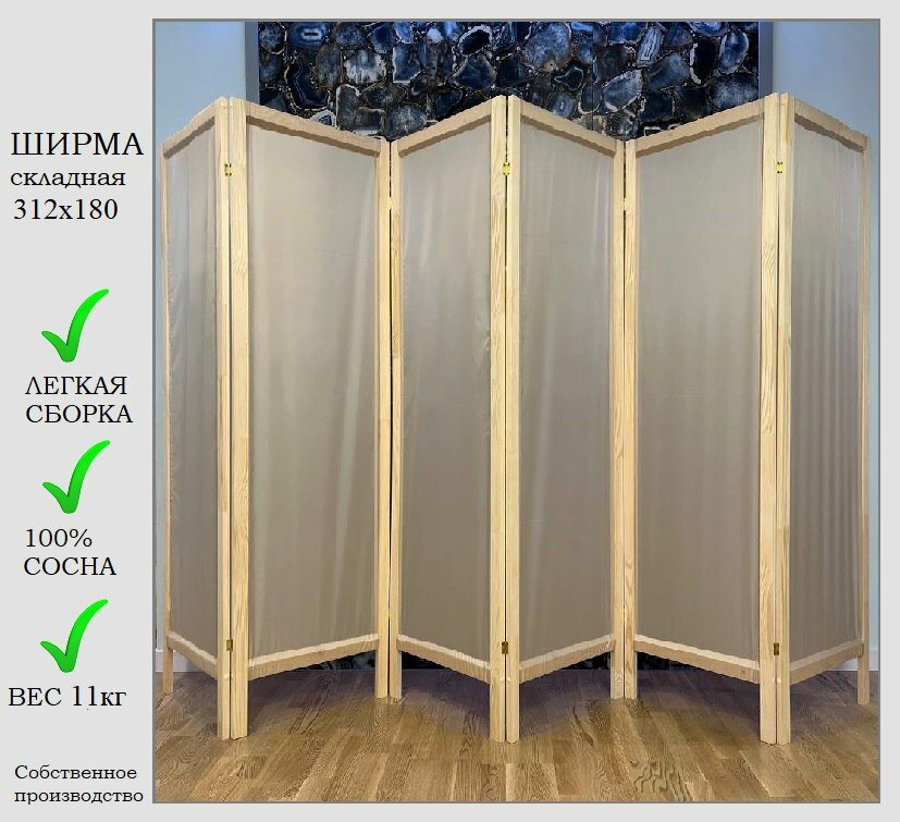 Ширма бежевая 6 створок, ширина 312 см высота 180 см, складная: сравнение цен, характеристики, фото, актуальное наличие и цены.