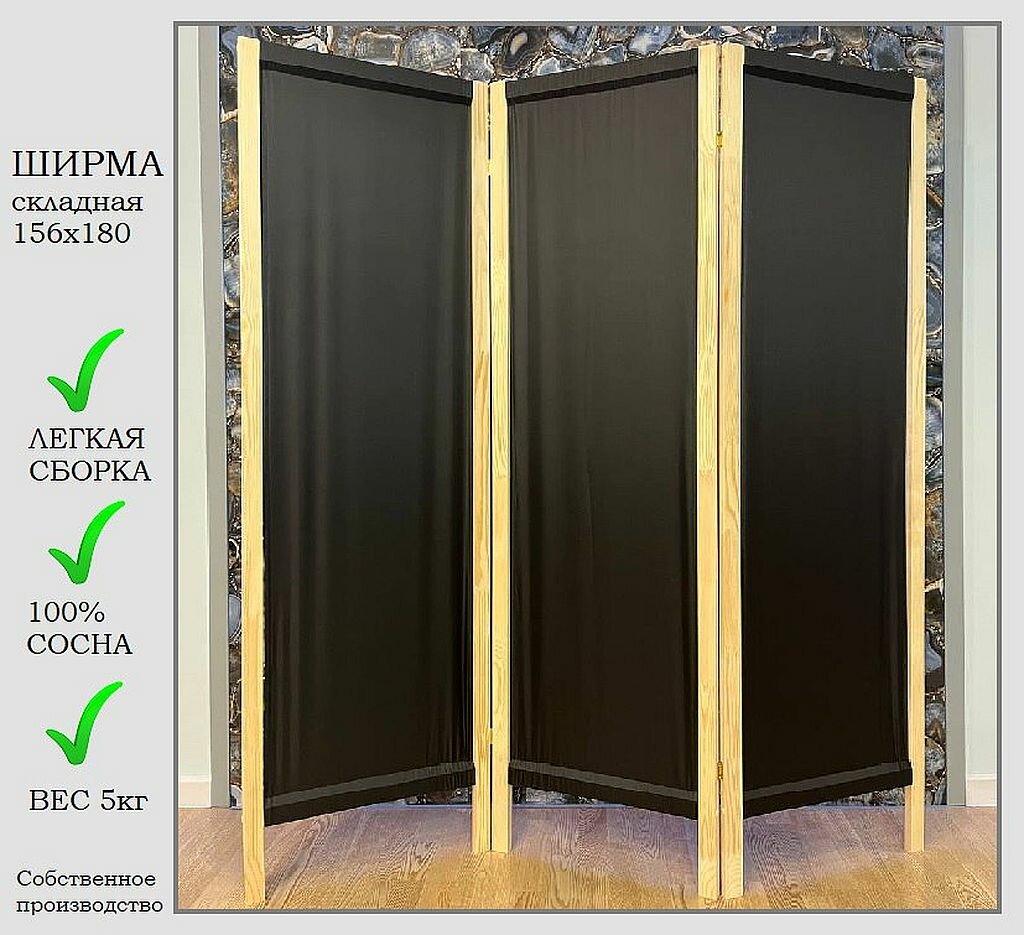 Ширма черная 3 створки, ширина 156 см высота 180 см, складная: сравнение цен, характеристики, фото, актуальное наличие и цены.