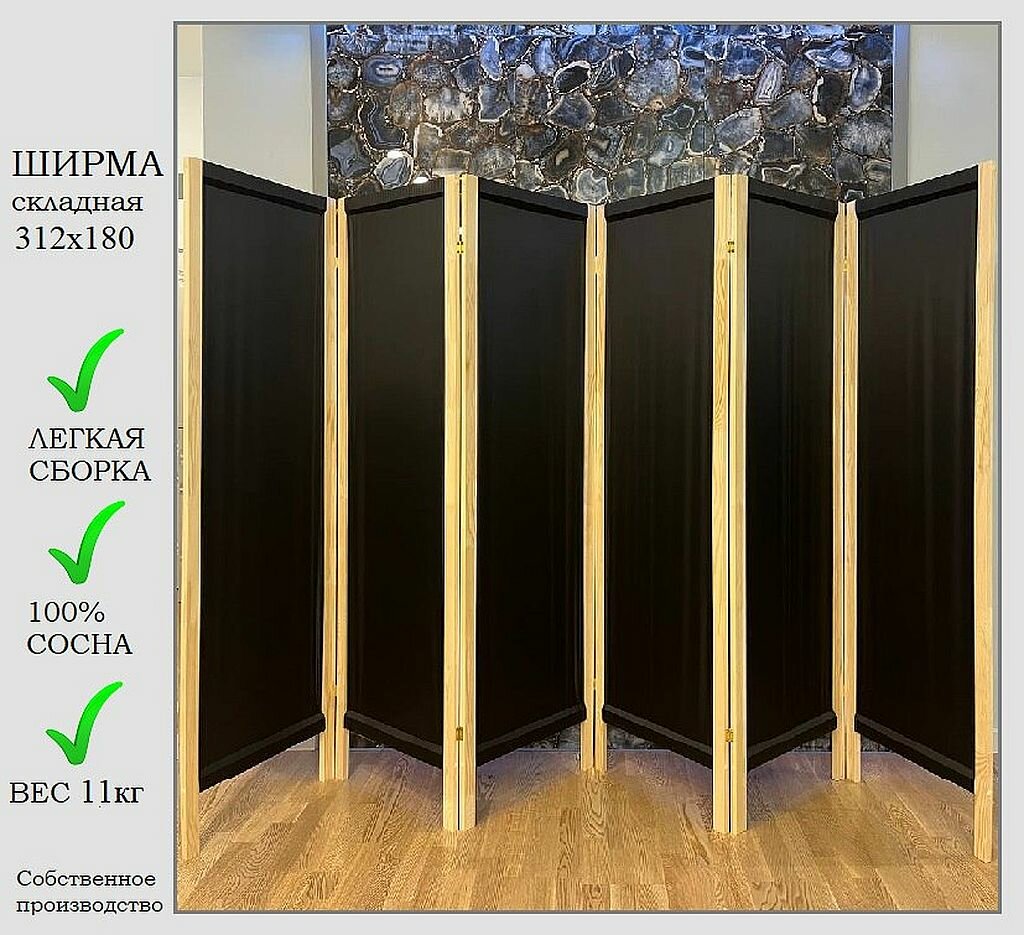 Ширма черная 6 створок, ширина 312 см высота 180 см, складная: сравнение цен, характеристики, фото, актуальное наличие и цены.