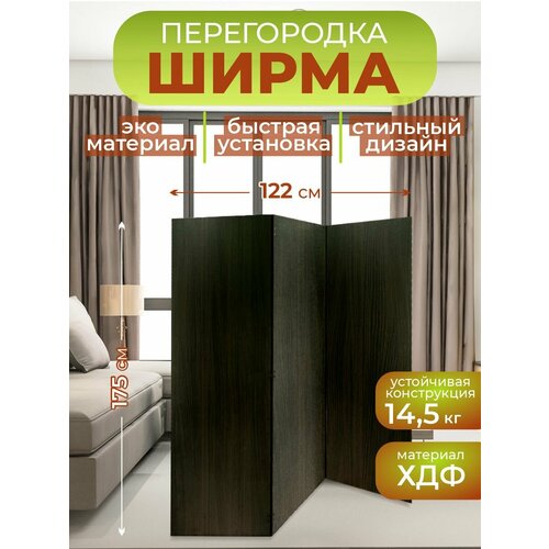 Ширма для зонирования комнаты перегородка 3 створки 122х175 см. Венге: сравнение цен, характеристики, фото, актуальное наличие и цены.